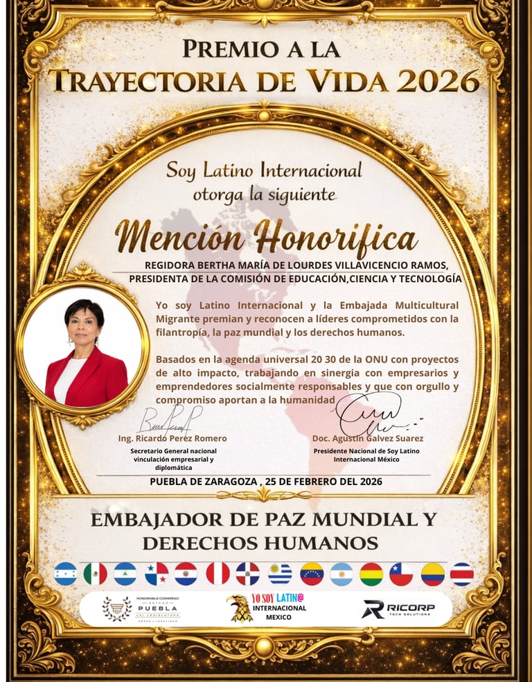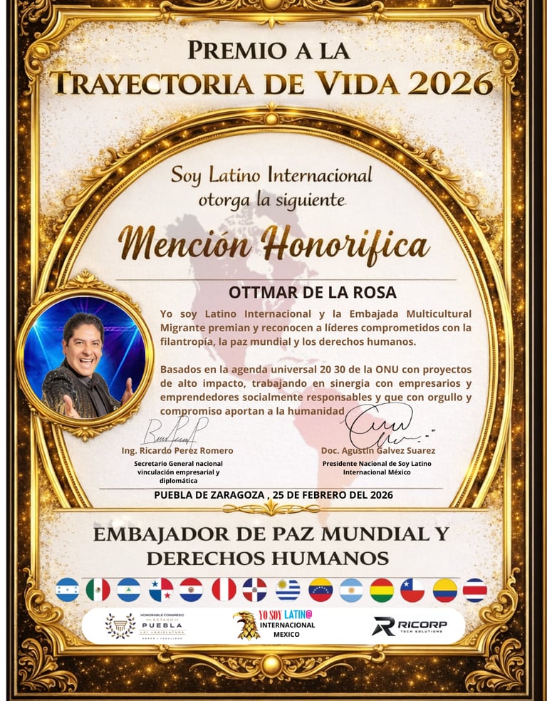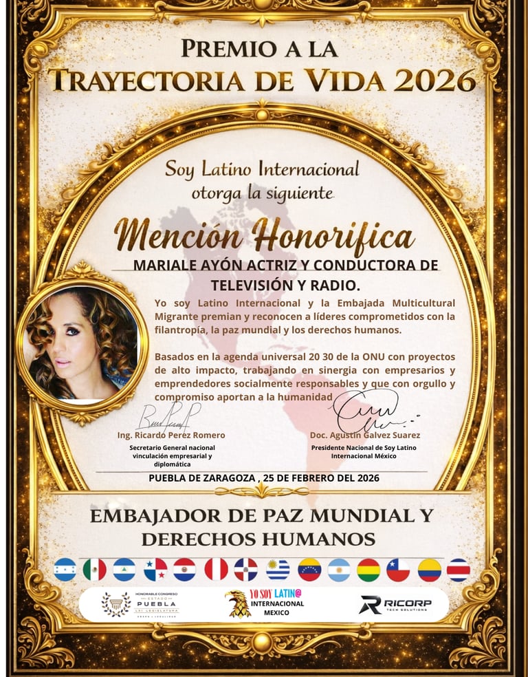 Es, GALARDÓN HONORÍFICO INTERNACIONAL, POR TRAYECTORIA DE VIDA 2026,